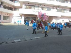 本日は前夜祭として、御神馬と踊り連の皆さまが当施設の正面で踊ってくださいました。