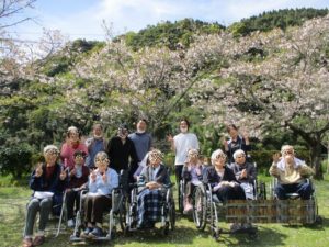 満開の桜に入所者様もテンションが上がり、「ビールを持ってこんね~」や「踊りを踊ろうか」など、とても楽しまれていました(^_-)-☆