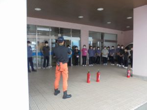 自主訓練にて避難誘導・初期消火(疑似)の訓練を行いました。